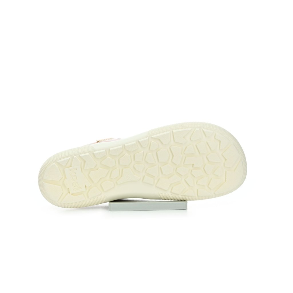 Dámske kožené barefoot tenisky Koel potešia ženy, ktoré chcú spojiť prirodzený pocit pri chôdzi s moderným vzhľadom a lesklými detailmi. Mäkká koža, veľmi ohybná podrážka, jemne trblietavé šnúrky a metalický efekt za pätou dodávajú každodennému noseniu radosť, pohodlie a moderný štýl.